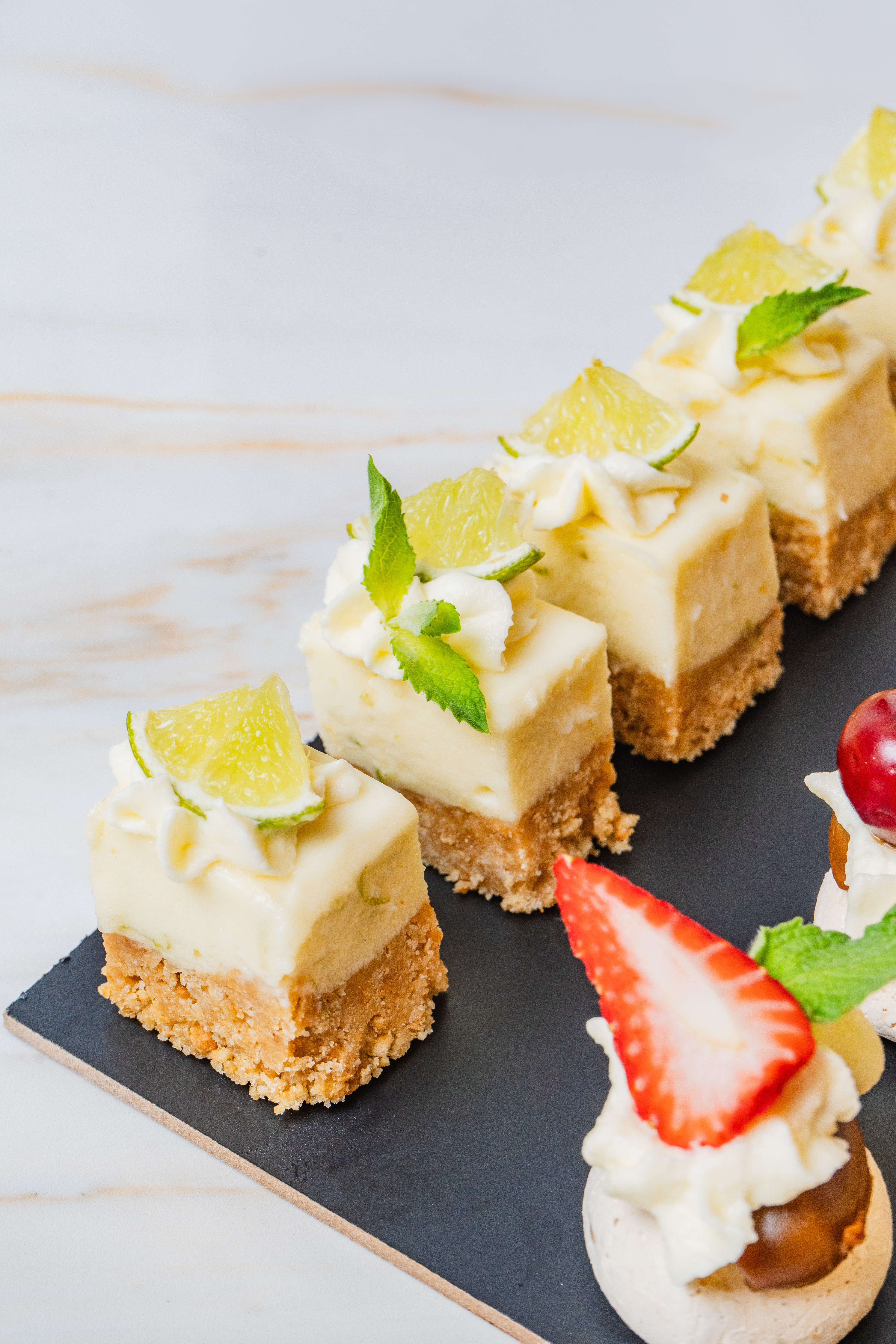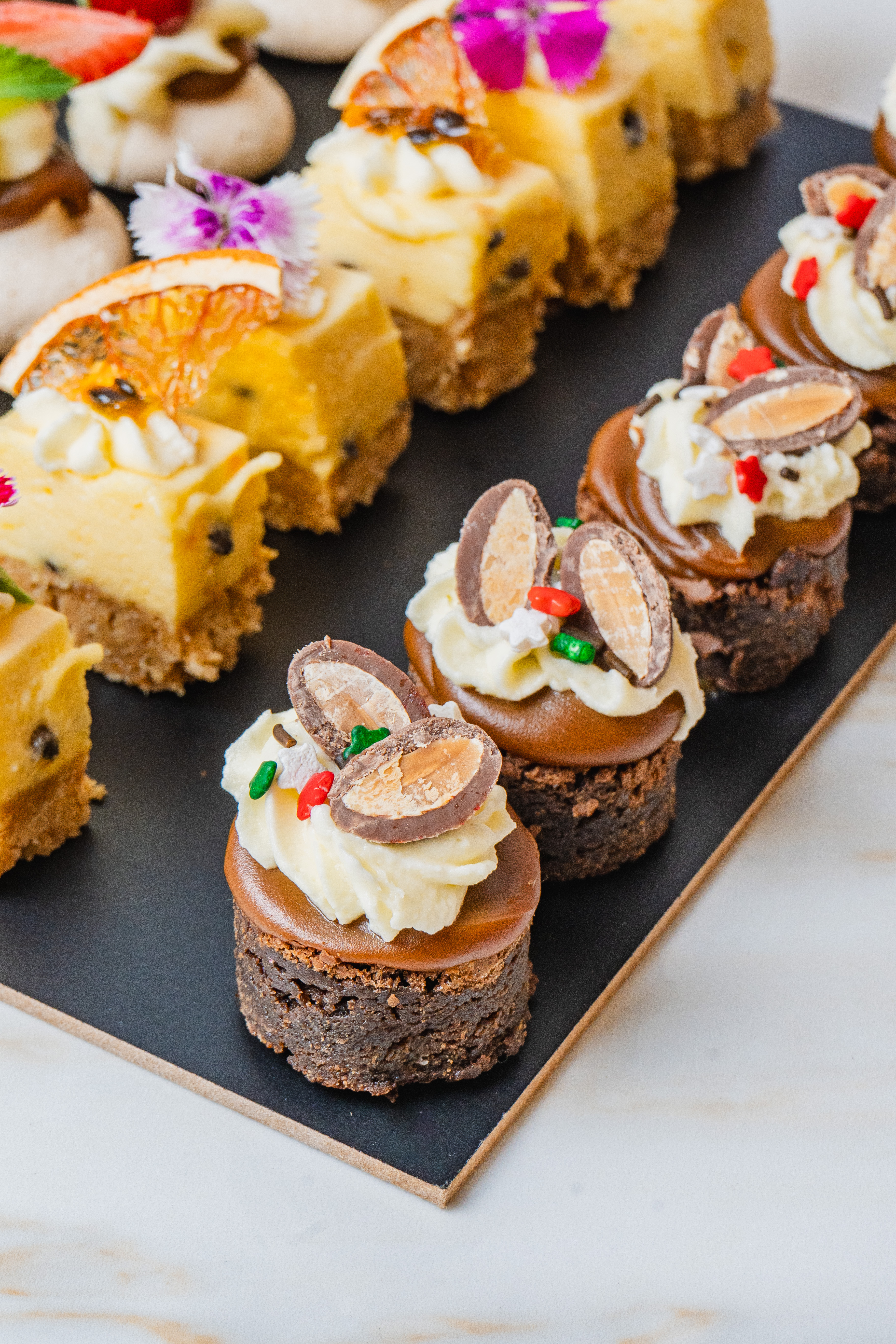 Nuestros petit fours reinterpretan la tarta clásica en un formato individual y contemporaneo.